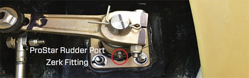 NOTE: The ProStar has one additional rudder port zerk fitting. Do NOT use white lithium grease on this rudder port. Use two (2) full shots of Alpha FG2-100, available only from an authorized MasterCraft Dealer,