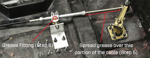 Spread a generous amount of white lithium grease over the cable end. Work the steering wheel back and forth and reapply grease.
