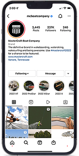 Let’s get social. Follow us on Instagram, Facebook, TikTok and YouTube for a constant stream of awesome straight to your phone. Get an inside look at the factory, the newest models and innovations and keep up with our talented roster of athletes. For a chance to be featured on our channels, make sure to tag us and use #mastercraft2022 or, our personal favorite, #mastercraftdogs.