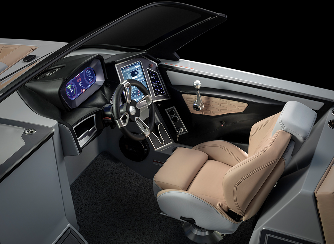 New for 2023, upgrade to a power helm seat and conveniently dial in the angle of your captain’s chair with just the push of a button. Available on the X and XStar families of boats.